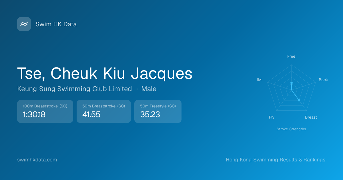 | 50m Breaststroke | 41.55 2026-02-10 | 20 | 10 | 2026-02-10 |