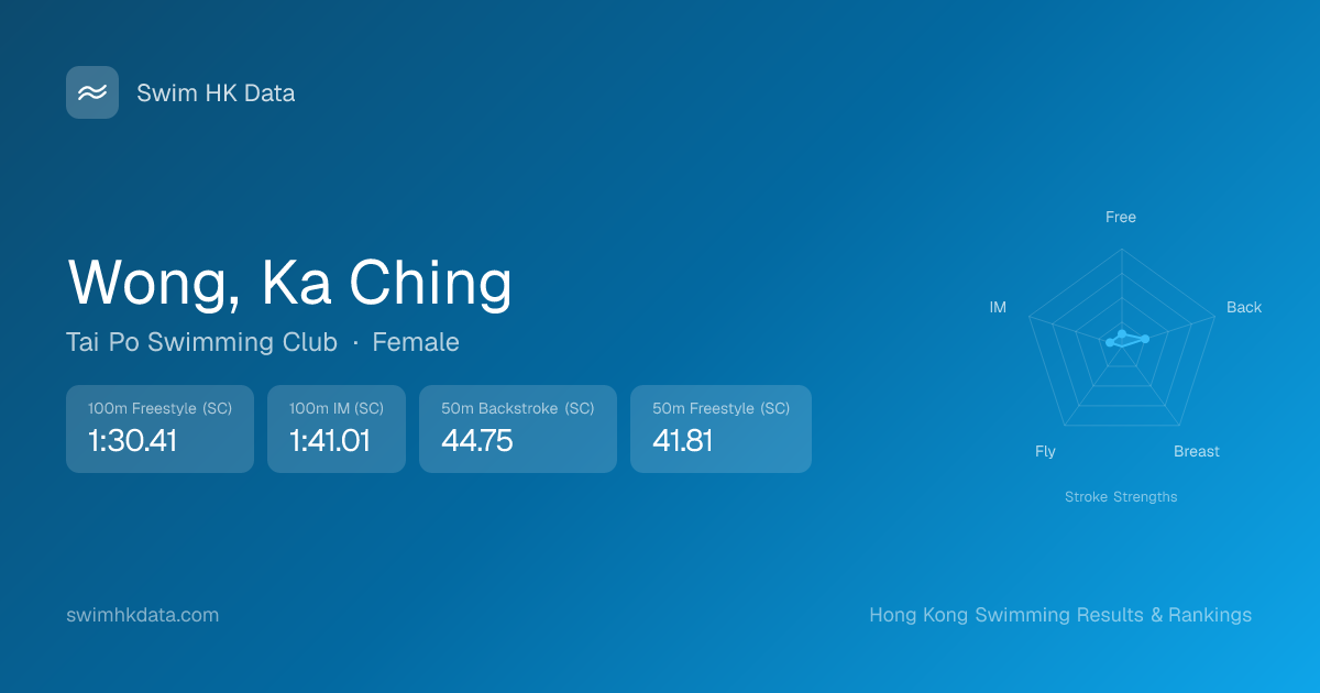 | 100m Freestyle | 1:30.41 2025-03-26 | 16 | 8 | 2025-03-26 |