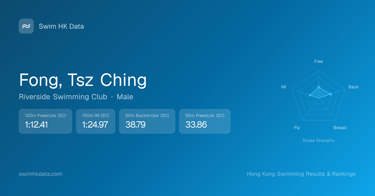 | 50m Freestyle | 33.86 2026-03-04 | 110 | 12 | 2026-03-04 |