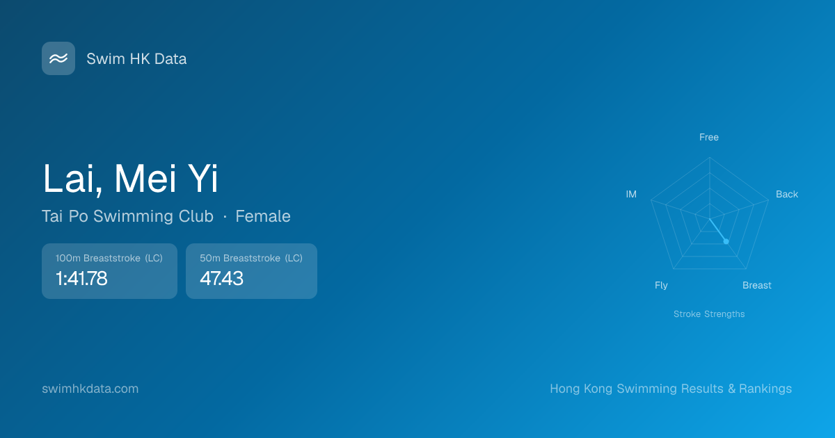 | 50m Breaststroke | 47.43 2025-06-09 | 5 | 10 | 2025-06-09 |