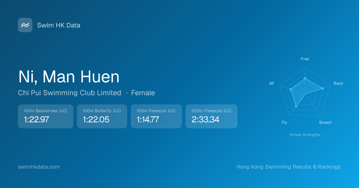 | 100m Butterfly | 1:22.05 2025-11-03 | 10 | 10 | 2025-11-03 |