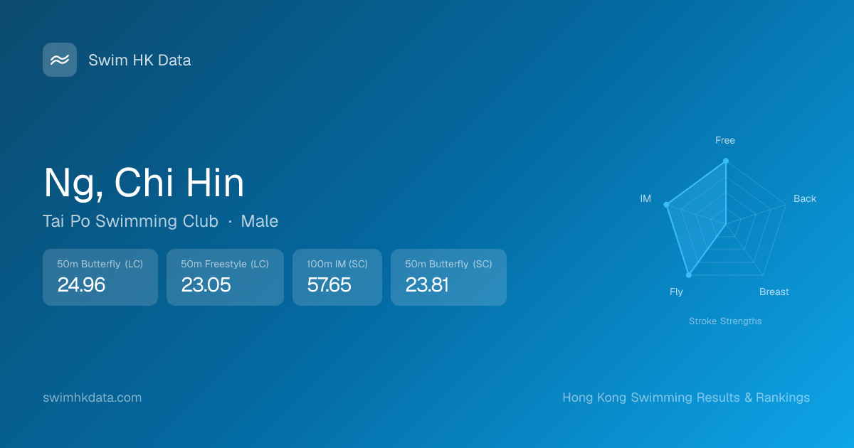 | 50m Butterfly | 23.81 2026-02-10 | 1 | 19 | 2026-02-10 |