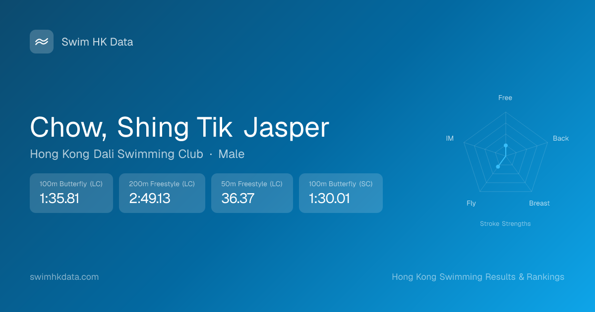 | 50m Butterfly | 38.53 2026-02-06 | 26 | 10 | 2026-02-06 |