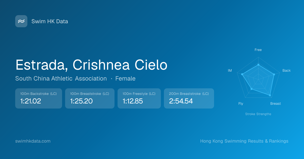 | 100m Individual Medley | 1:16.30 2025-11-05 | 57 | 13 | 2025-11-05 |