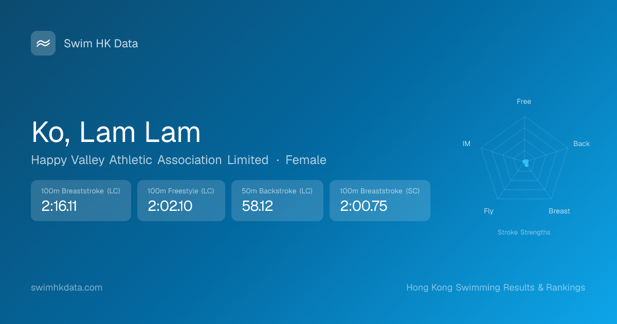 | 50m Backstroke | 58.12 2025-06-09 | 15 | 8 | 2025-06-09 |