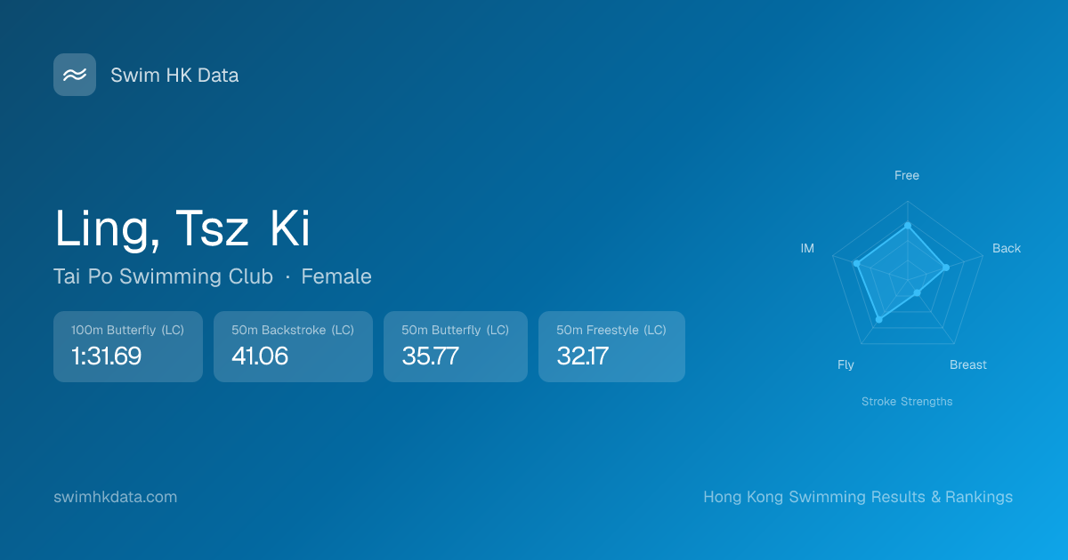 | 50m Butterfly | 35.77 2025-11-03 | 8 | 10 | 2025-11-03 |