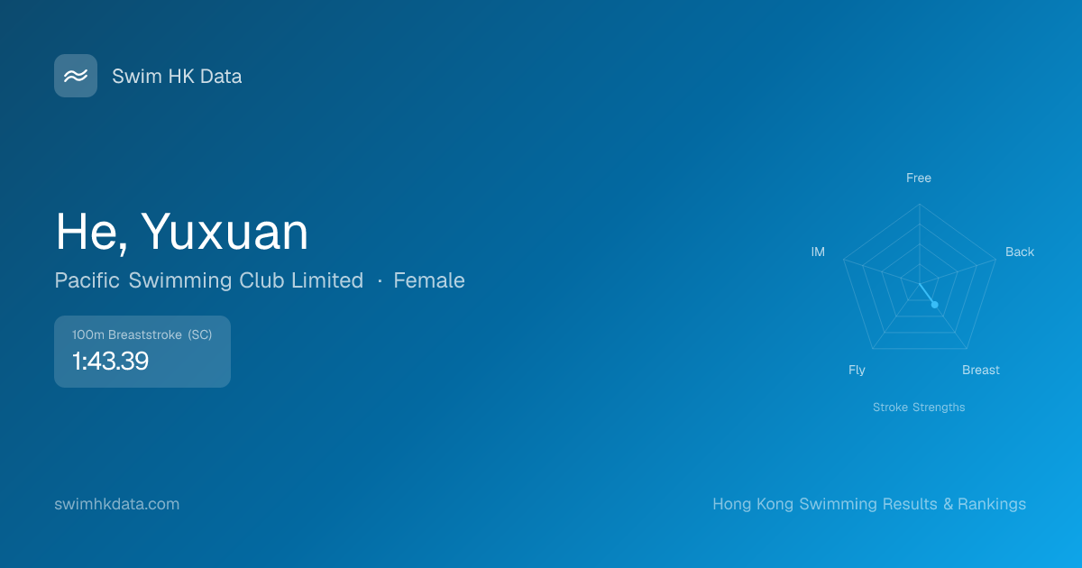 | 100m Breaststroke | 1:43.39 2026-03-04 | 30 | 10 | 2026-03-04 |