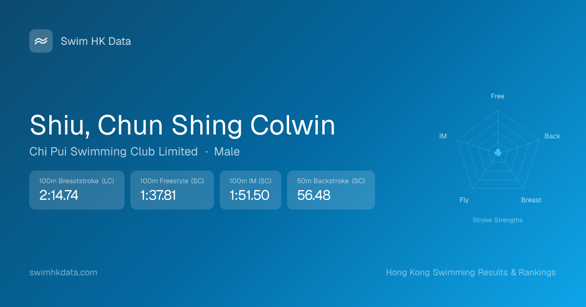 | 100m Freestyle | 1:37.81 2026-03-31 | 40 | 8 | 2026-03-31 |