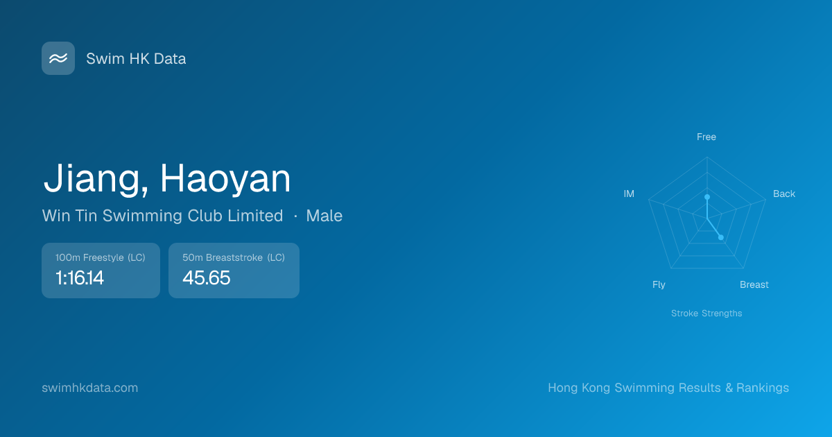 | 100m Freestyle | 1:16.14 2025-06-09 | 7 | 10 | 2025-06-09 |