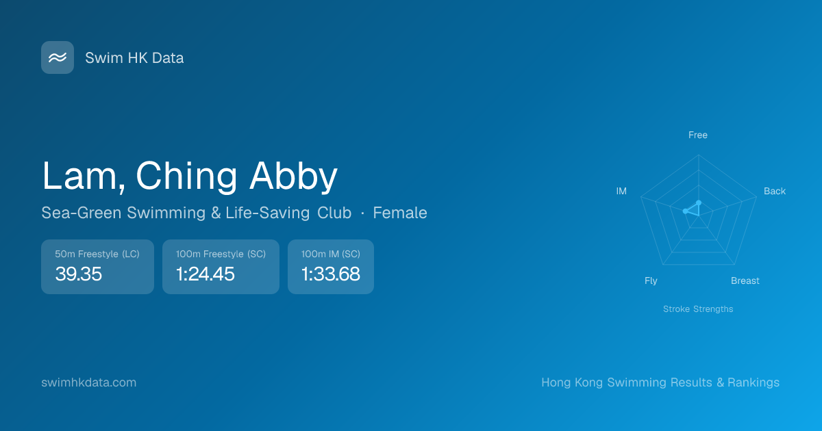 | 100m Freestyle | 1:24.45 2026-03-31 | 94 | 12 | 2026-03-31 |