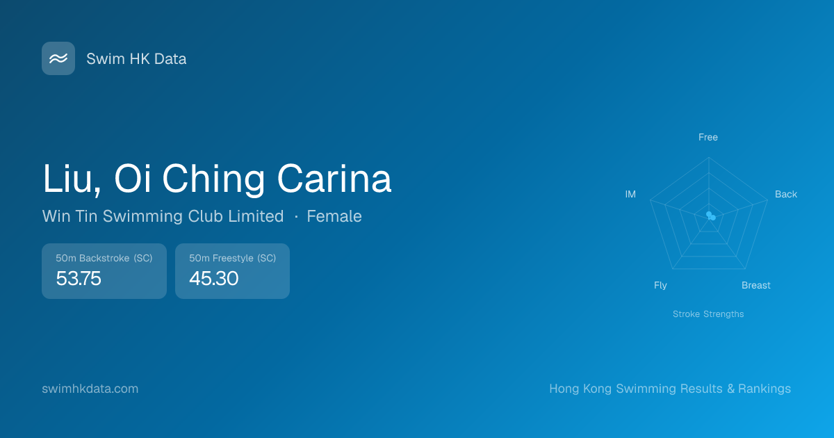 | 50m Backstroke | 53.75 2026-03-04 | 126 | 9 | 2026-03-04 |