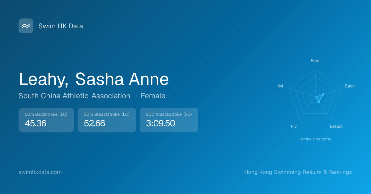 | 200m Backstroke | 3:09.50 2026-03-16 | 53 | 11 | 2026-03-16 |