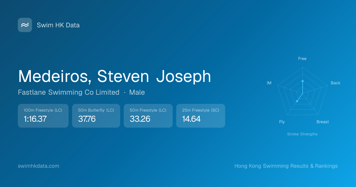 | 50m Butterfly | 37.76 2026-02-02 | 2 | 56 | 2026-02-02 |