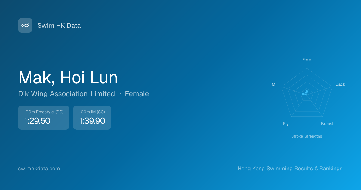 | 100m Freestyle | 1:29.50 2026-03-31 | 20 | 8 | 2026-03-31 |