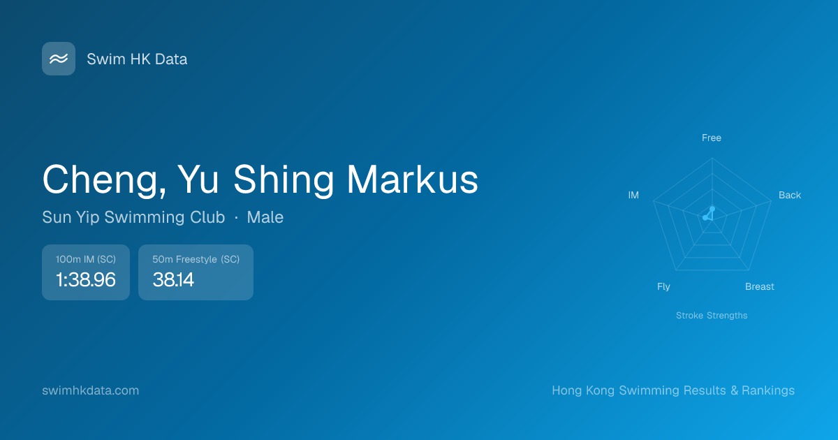 | 50m Freestyle | 38.14 2026-03-16 | 56 | 10 | 2026-03-16 |