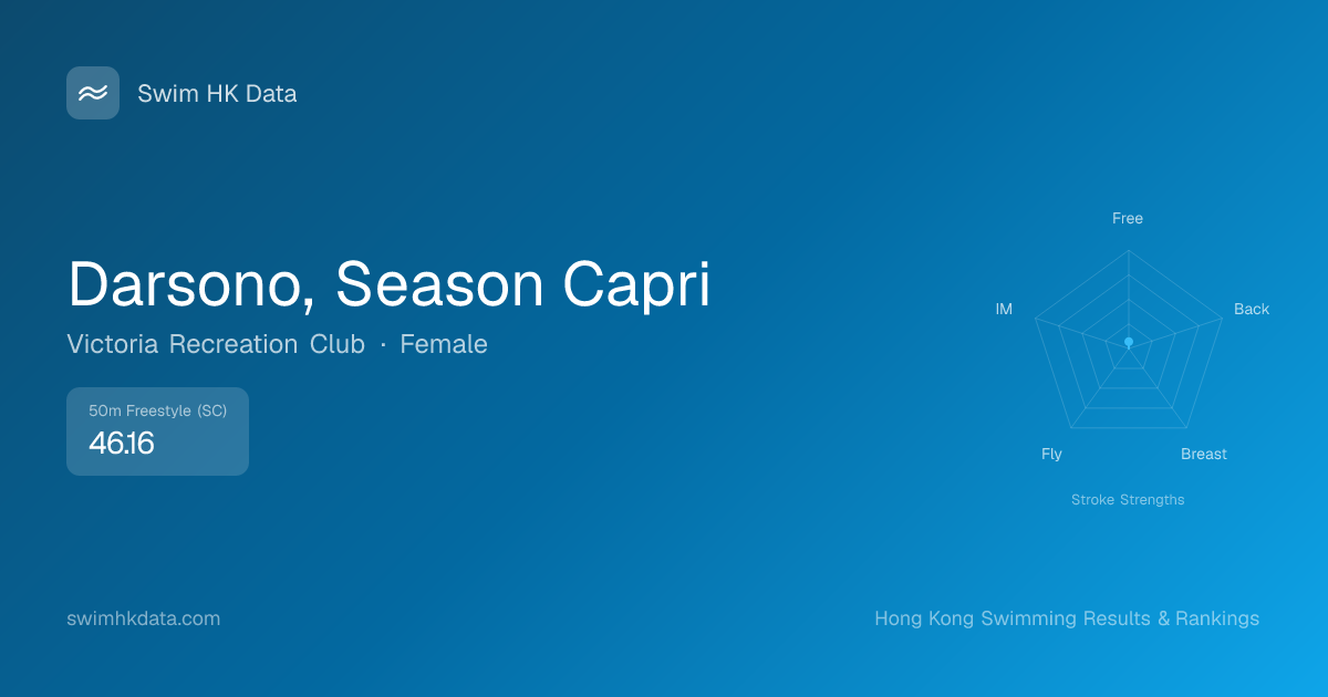 | 50m Freestyle | 46.16 2026-03-04 | 170 | 10 | 2026-03-04 |