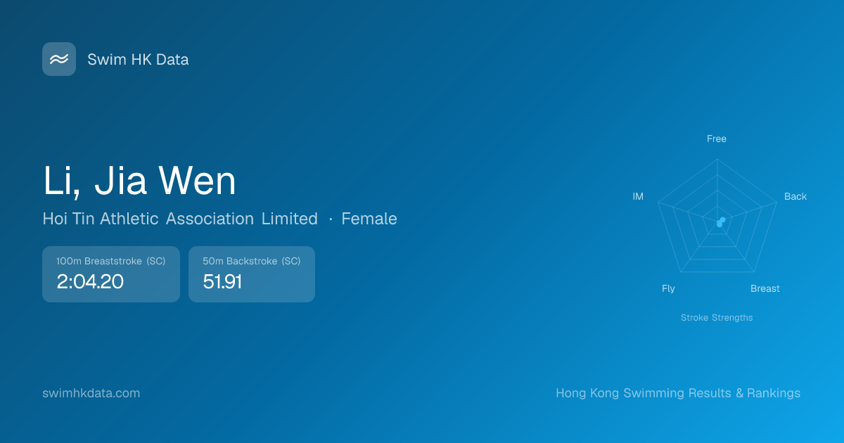 | 50m Backstroke | 51.91 2026-03-04 | 123 | 9 | 2026-03-04 |
