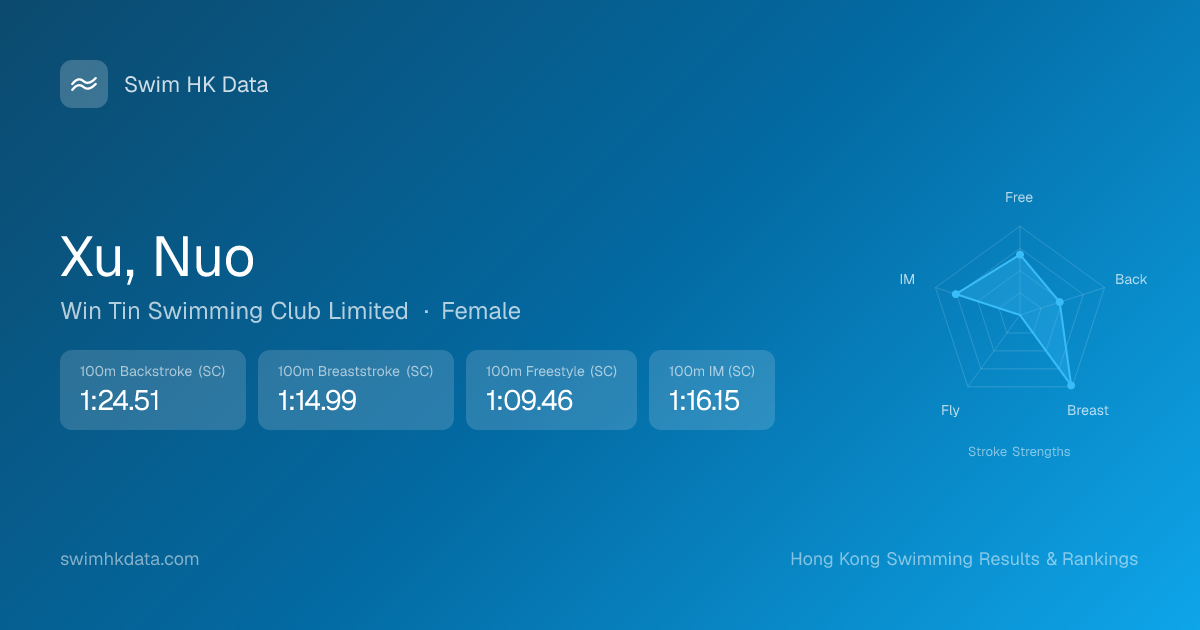| 100m Breaststroke | 1:14.99 2026-03-16 | 1 | 12 | 2026-03-16 |