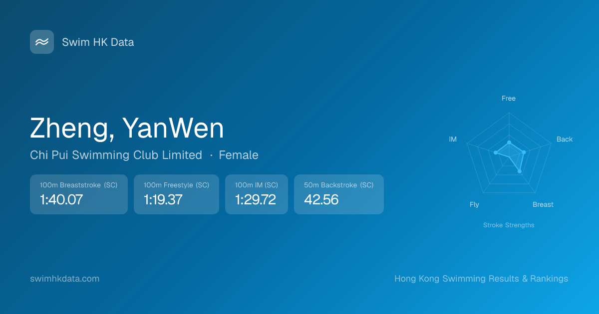 | 100m Freestyle | 1:19.37 2026-03-16 | 50 | 10 | 2026-03-16 |
