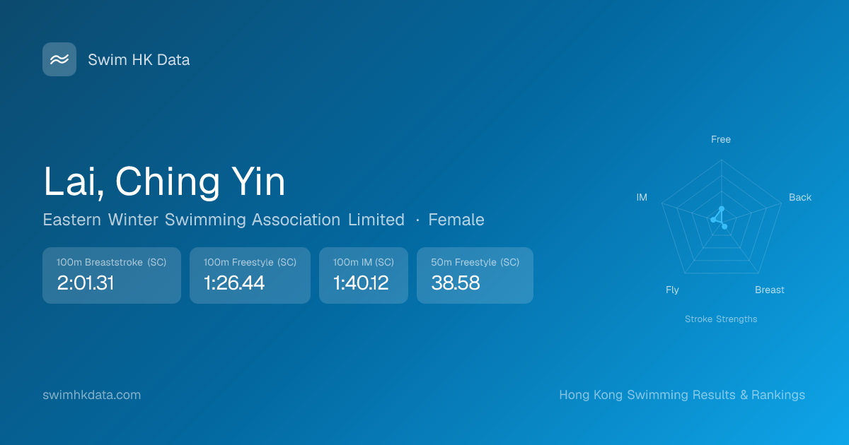 | 50m Freestyle | 38.58 2026-03-04 | 13 | 8 | 2026-03-04 |