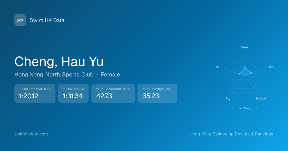 | 100m Freestyle | 1:20.12 2026-03-31 | 35 | 10 | 2026-03-31 |