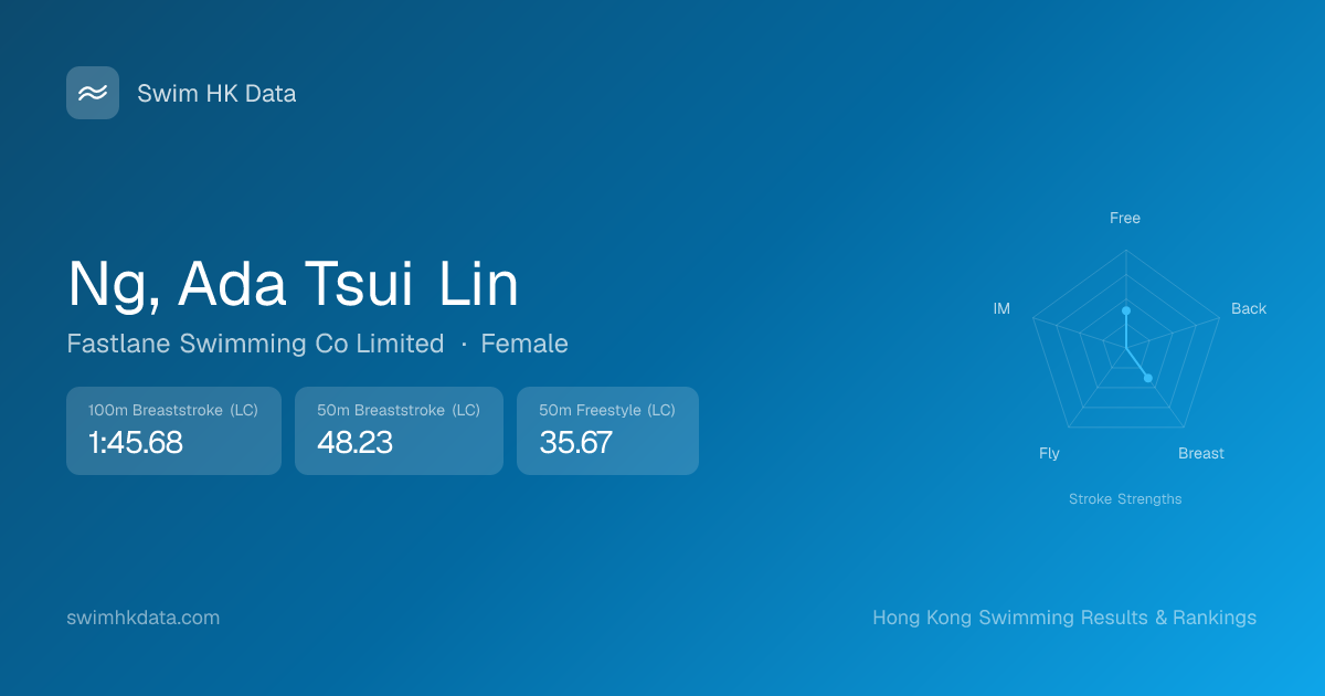 | 50m Breaststroke | 48.23 2026-02-02 | 4 | 45 | 2026-02-02 |