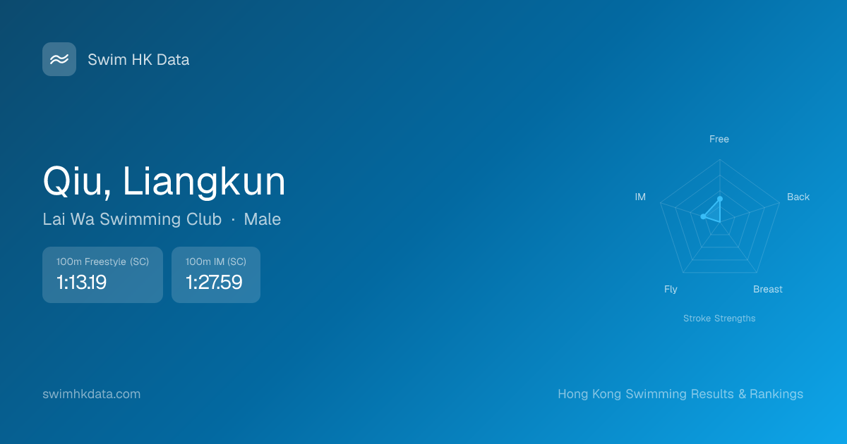 | 100m Individual Medley | 1:27.59 2026-03-31 | 107 | 12 | 2026-03-31 |