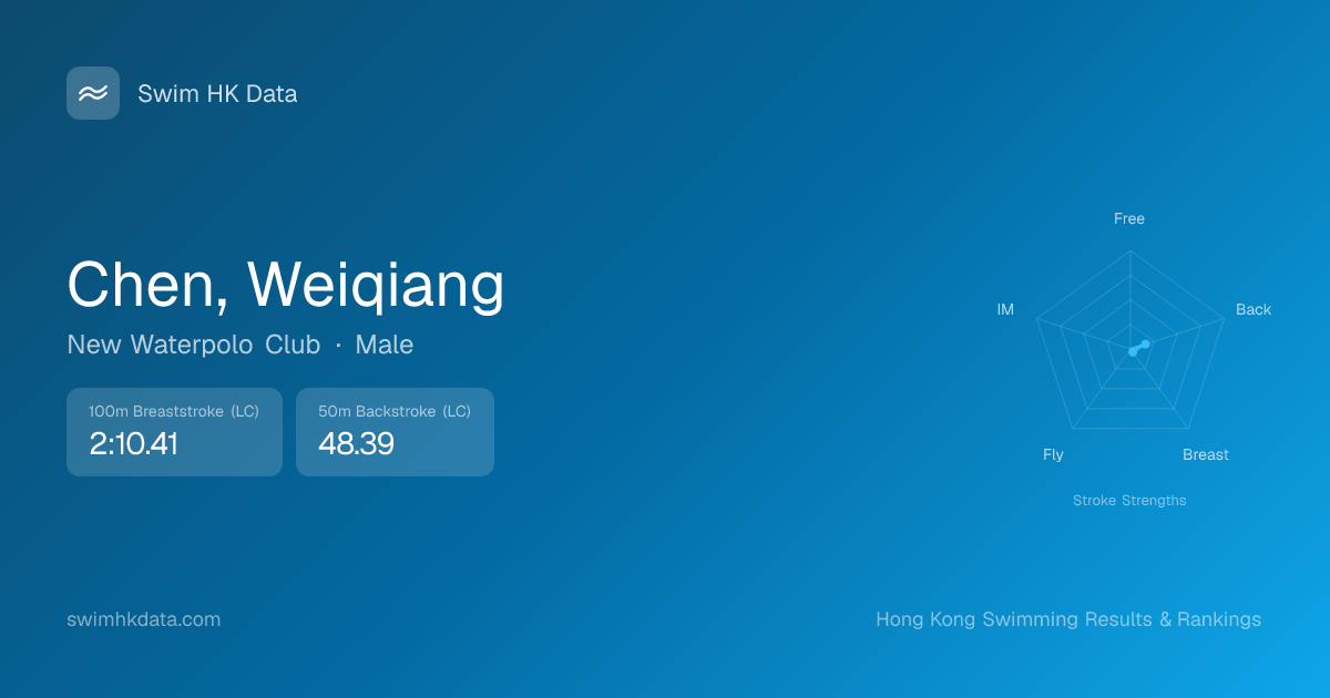 | 100m Breaststroke | 2:10.41 2026-02-02 | 2 | 29 | 2026-02-02 |