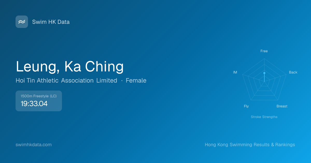 | 1500m Freestyle | 19:33.04 2025-11-03 | 3 | 21 | 2025-11-03 |
