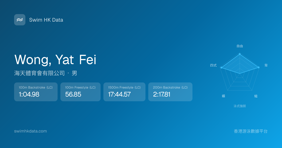 此圖表根據你所有比賽成績計算,顯示你在各泳式的相對強弱,僅供參考。繼續努力,每一次練習都會讓你更快更強!💪