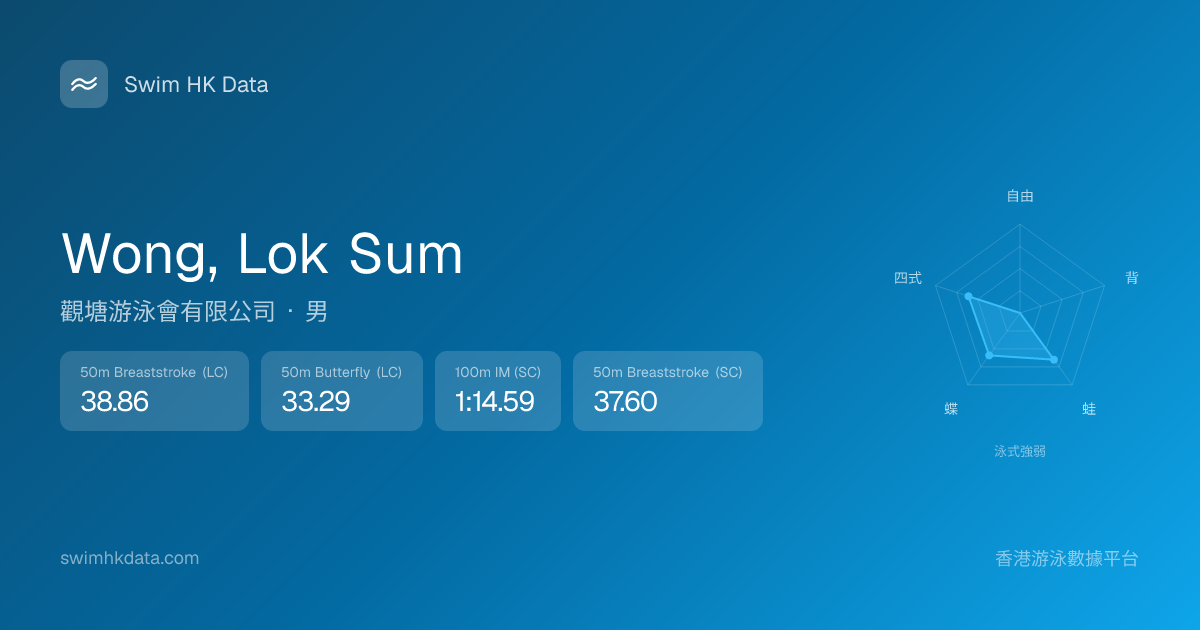 此圖表根據你所有比賽成績計算,顯示你在各泳式的相對強弱,僅供參考。繼續努力,每一次練習都會讓你更快更強!💪
