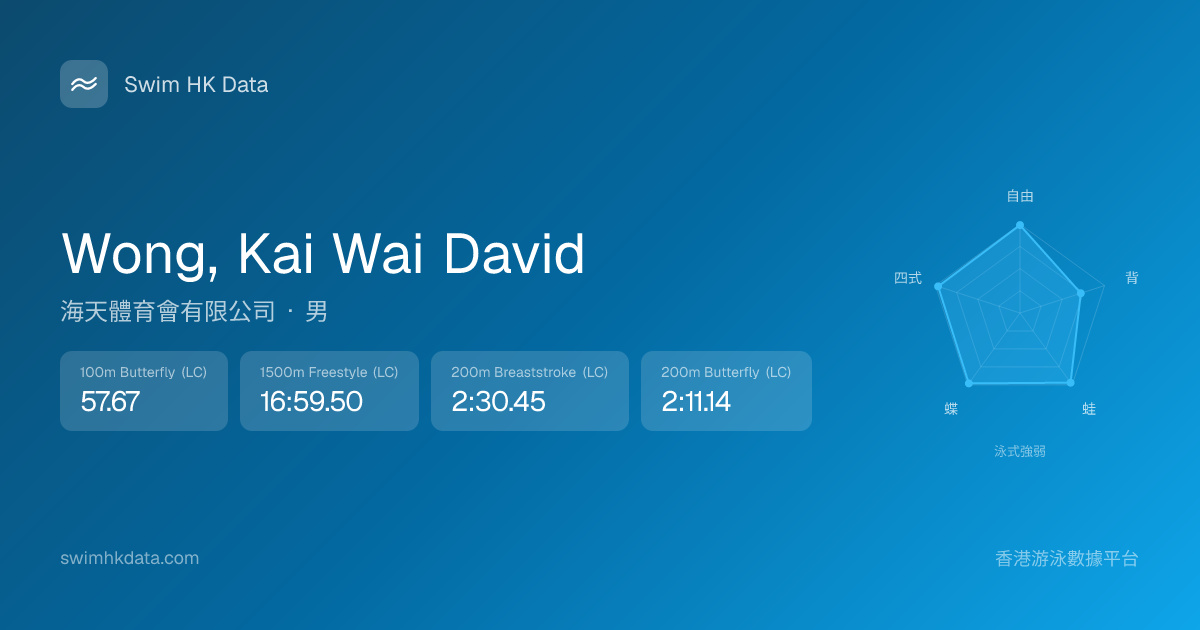 此圖表根據你所有比賽成績計算,顯示你在各泳式的相對強弱,僅供參考。繼續努力,每一次練習都會讓你更快更強!💪