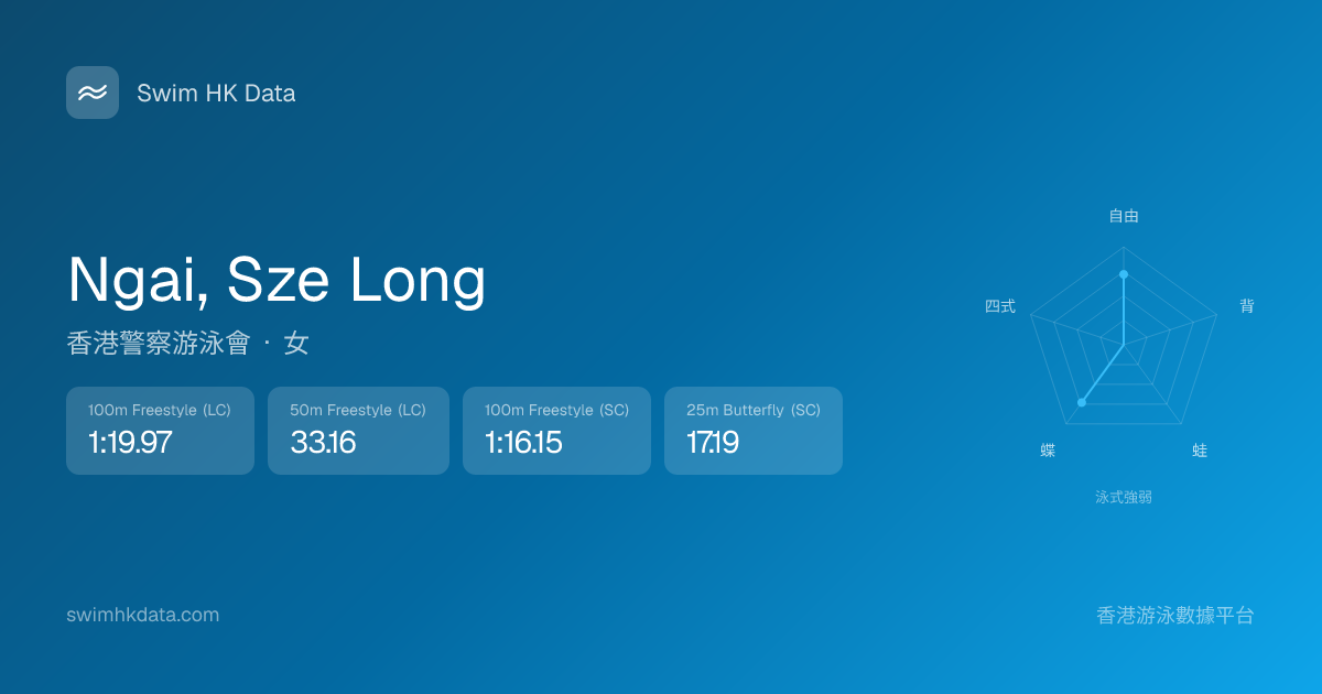 此圖表根據你所有比賽成績計算,顯示你在各泳式的相對強弱,僅供參考。繼續努力,每一次練習都會讓你更快更強!💪