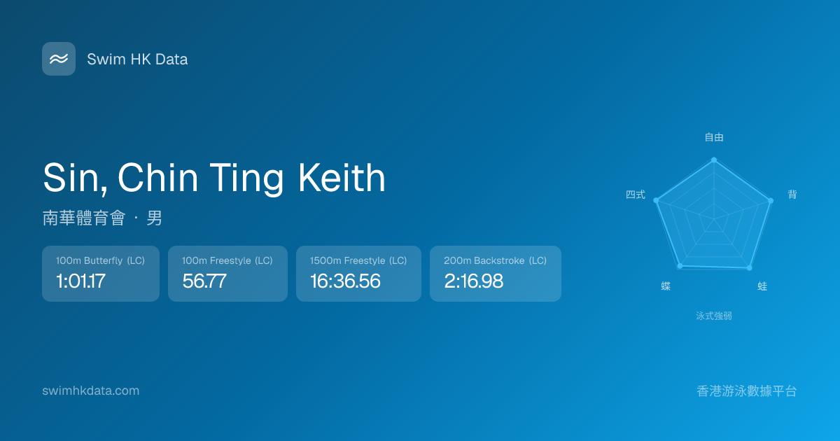 此圖表根據你所有比賽成績計算,顯示你在各泳式的相對強弱,僅供參考。繼續努力,每一次練習都會讓你更快更強!💪