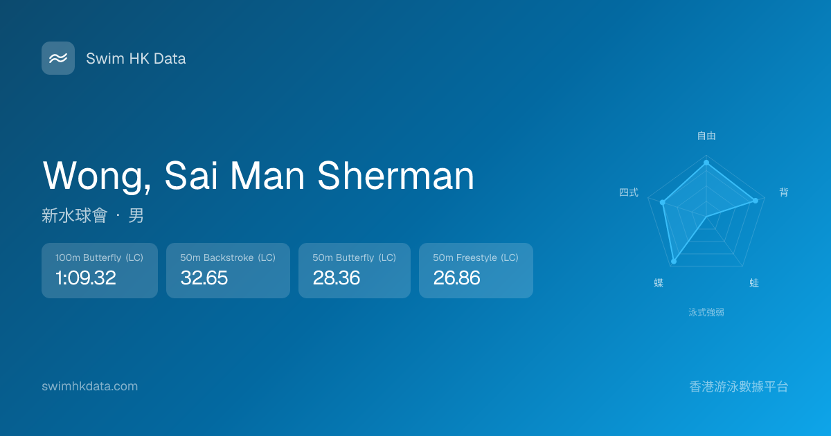 此圖表根據你所有比賽成績計算,顯示你在各泳式的相對強弱,僅供參考。繼續努力,每一次練習都會讓你更快更強!💪