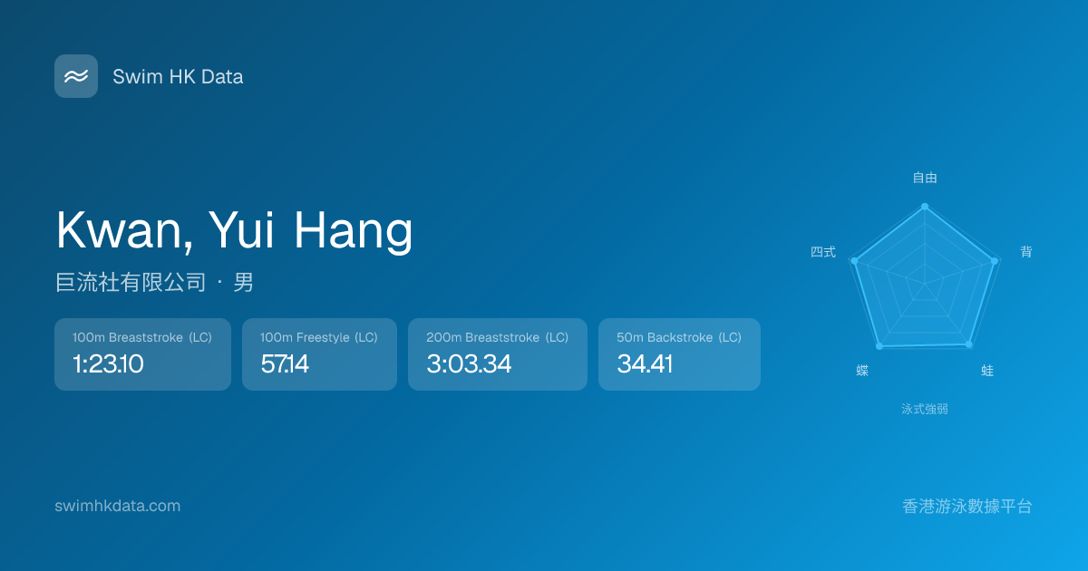 此圖表根據你所有比賽成績計算,顯示你在各泳式的相對強弱,僅供參考。繼續努力,每一次練習都會讓你更快更強!💪
