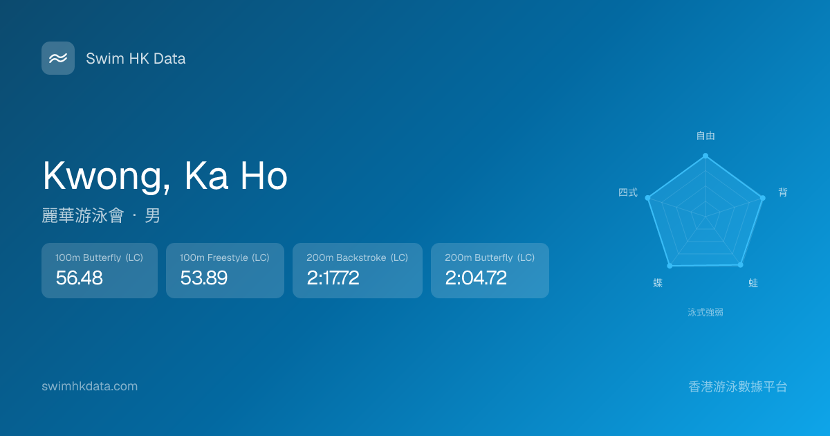 此圖表根據你所有比賽成績計算,顯示你在各泳式的相對強弱,僅供參考。繼續努力,每一次練習都會讓你更快更強!💪