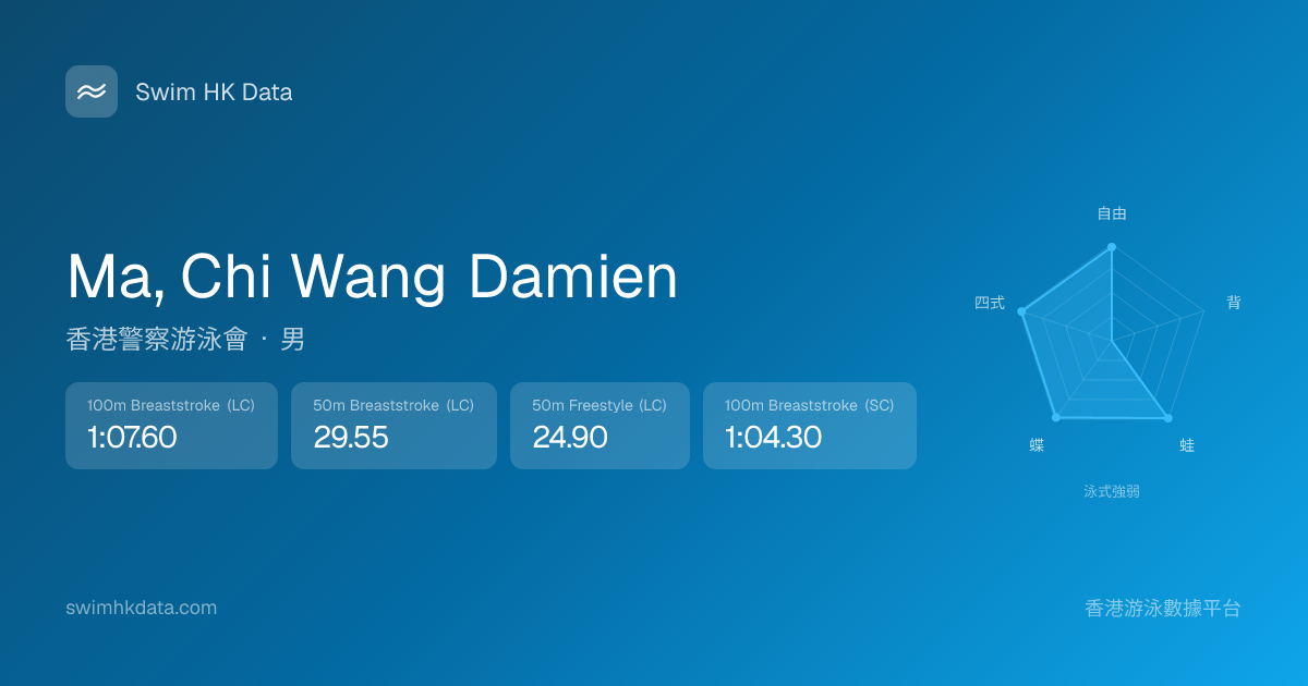 此圖表根據你所有比賽成績計算,顯示你在各泳式的相對強弱,僅供參考。繼續努力,每一次練習都會讓你更快更強!💪