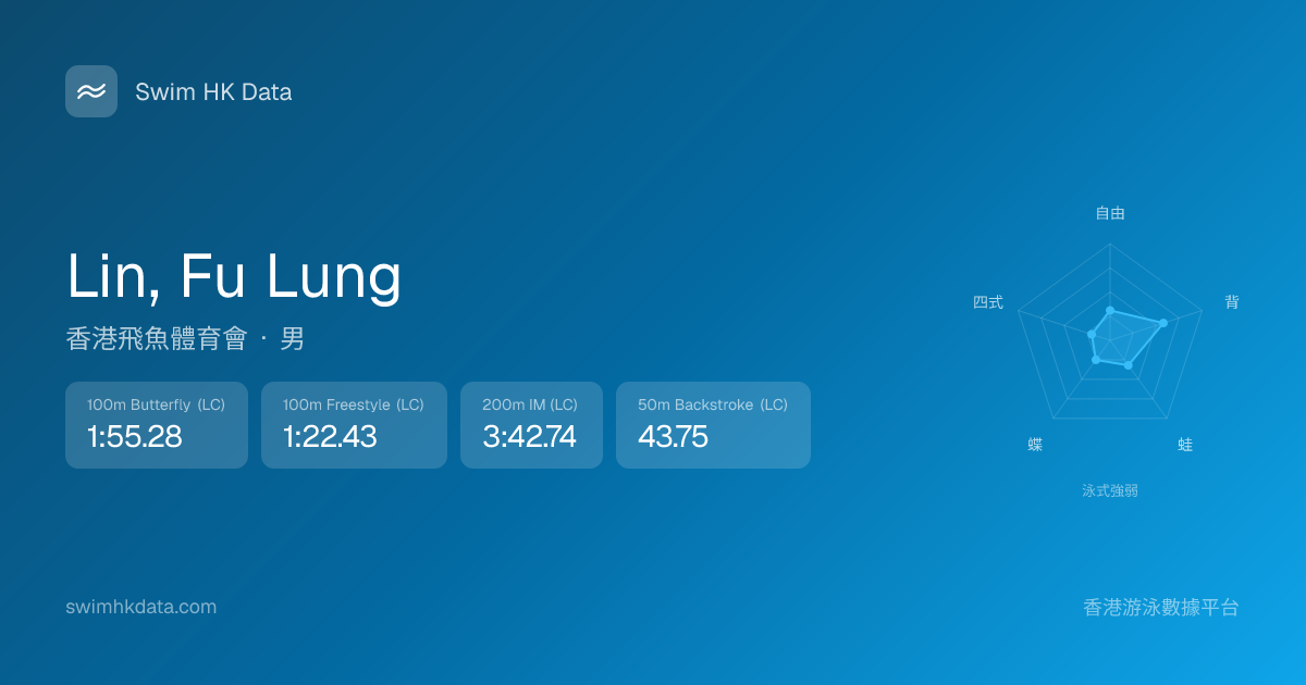 此圖表根據你所有比賽成績計算,顯示你在各泳式的相對強弱,僅供參考。繼續努力,每一次練習都會讓你更快更強!💪