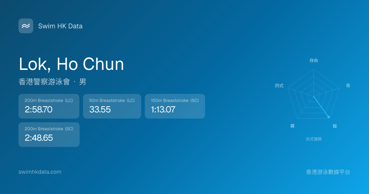 此圖表根據你所有比賽成績計算,顯示你在各泳式的相對強弱,僅供參考。繼續努力,每一次練習都會讓你更快更強!💪