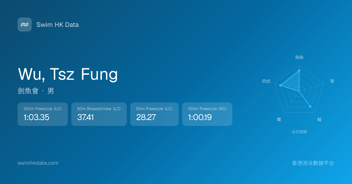 此圖表根據你所有比賽成績計算,顯示你在各泳式的相對強弱,僅供參考。繼續努力,每一次練習都會讓你更快更強!💪