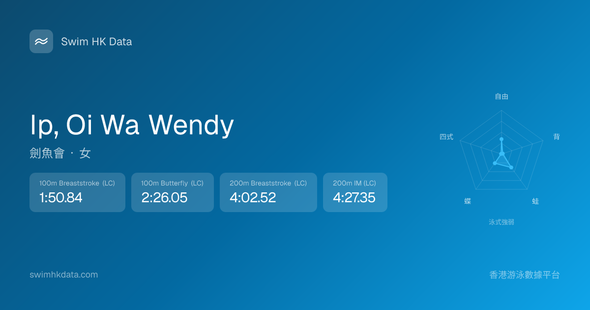 此圖表根據你所有比賽成績計算,顯示你在各泳式的相對強弱,僅供參考。繼續努力,每一次練習都會讓你更快更強!💪