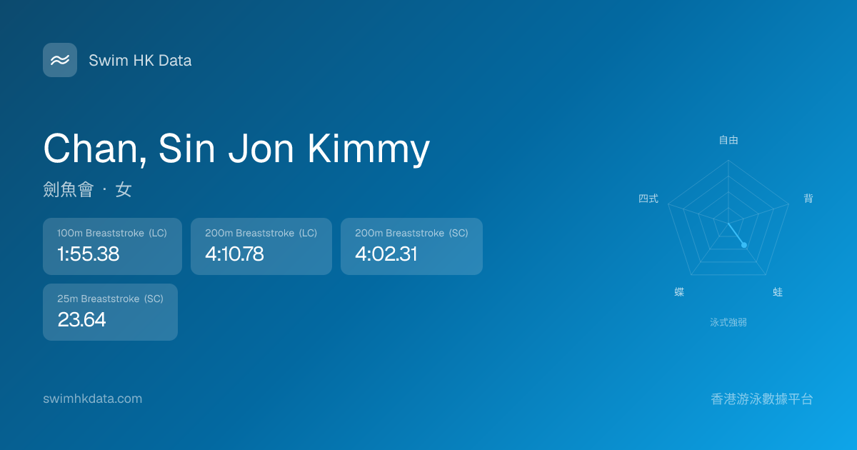 此圖表根據你所有比賽成績計算,顯示你在各泳式的相對強弱,僅供參考。繼續努力,每一次練習都會讓你更快更強!💪