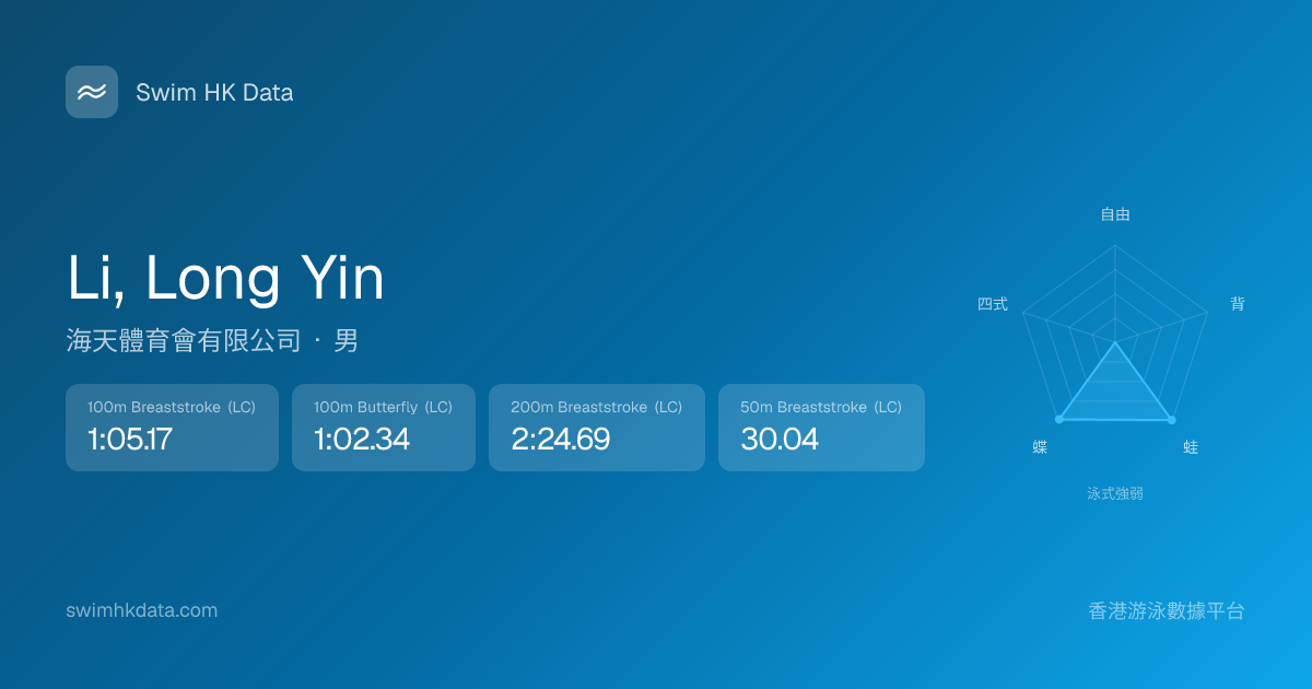 此圖表根據你所有比賽成績計算,顯示你在各泳式的相對強弱,僅供參考。繼續努力,每一次練習都會讓你更快更強!💪