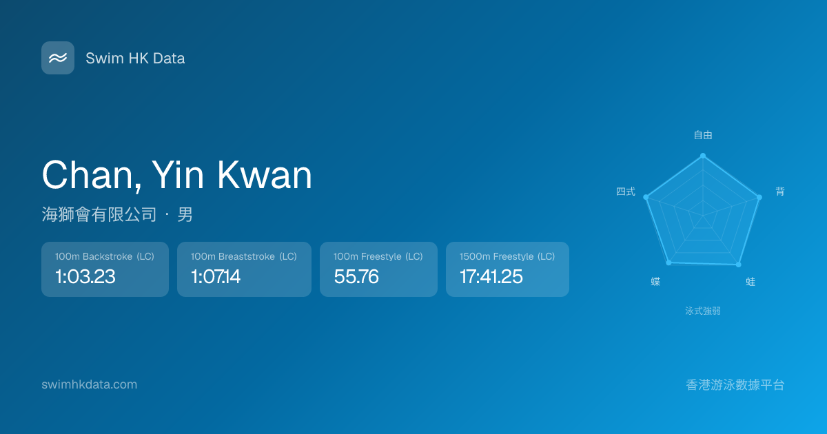 此圖表根據你所有比賽成績計算,顯示你在各泳式的相對強弱,僅供參考。繼續努力,每一次練習都會讓你更快更強!💪