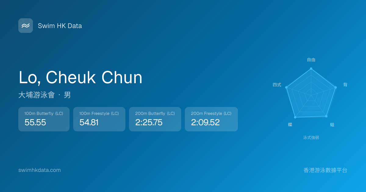 此圖表根據你所有比賽成績計算,顯示你在各泳式的相對強弱,僅供參考。繼續努力,每一次練習都會讓你更快更強!💪