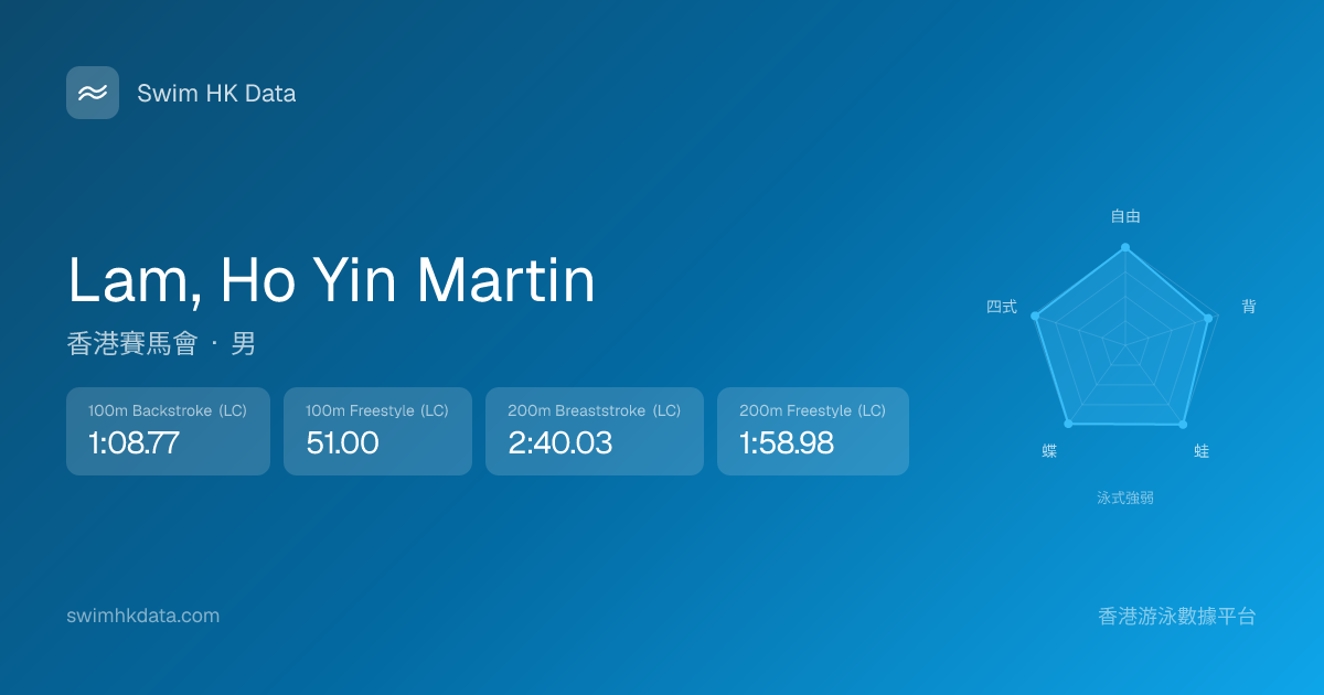 此圖表根據你所有比賽成績計算,顯示你在各泳式的相對強弱,僅供參考。繼續努力,每一次練習都會讓你更快更強!💪
