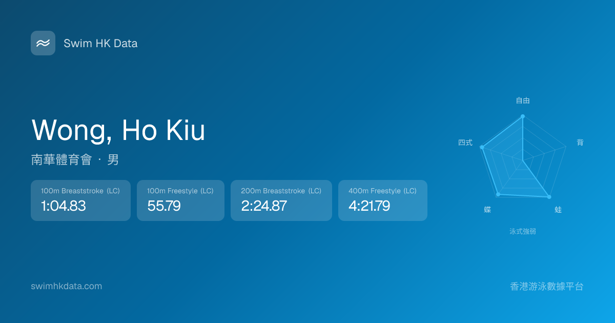 此圖表根據你所有比賽成績計算,顯示你在各泳式的相對強弱,僅供參考。繼續努力,每一次練習都會讓你更快更強!💪