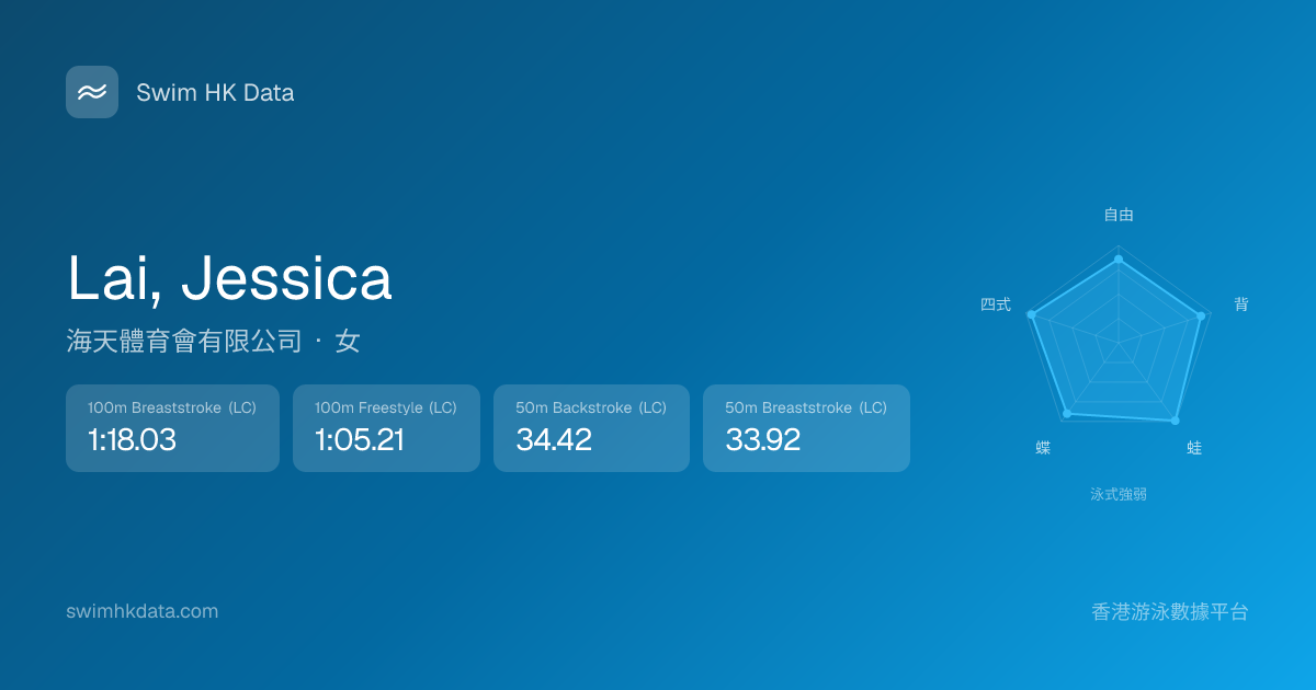 此圖表根據你所有比賽成績計算,顯示你在各泳式的相對強弱,僅供參考。繼續努力,每一次練習都會讓你更快更強!💪