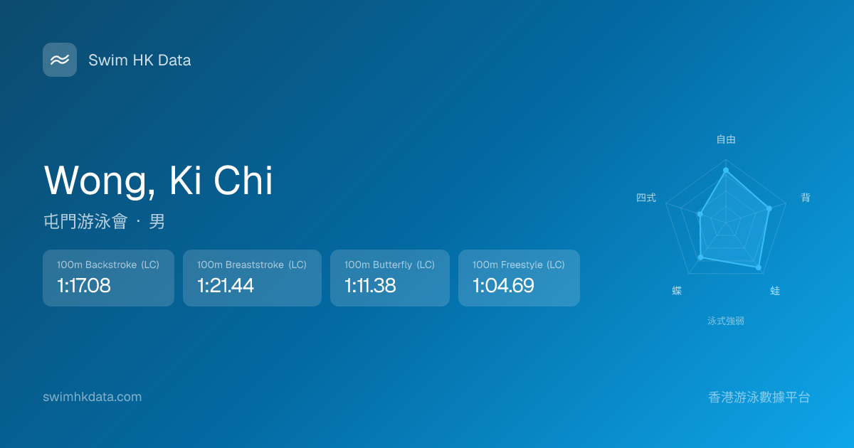 此圖表根據你所有比賽成績計算,顯示你在各泳式的相對強弱,僅供參考。繼續努力,每一次練習都會讓你更快更強!💪